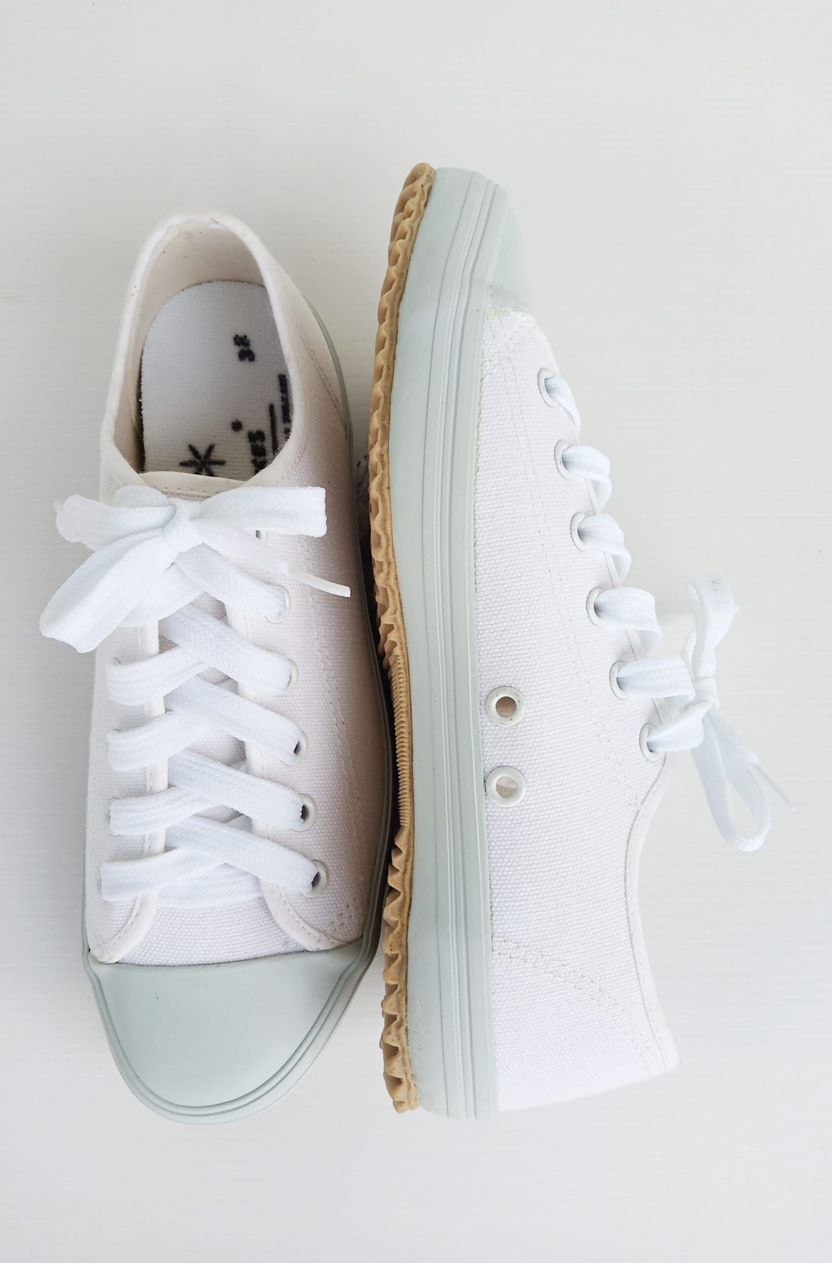 การผลิต : งามฝีมือ ผสาน เครื่องจักรผลิตรองเท้าโดยเฉพาะ แบบเดียวกับ Brand converse shoes